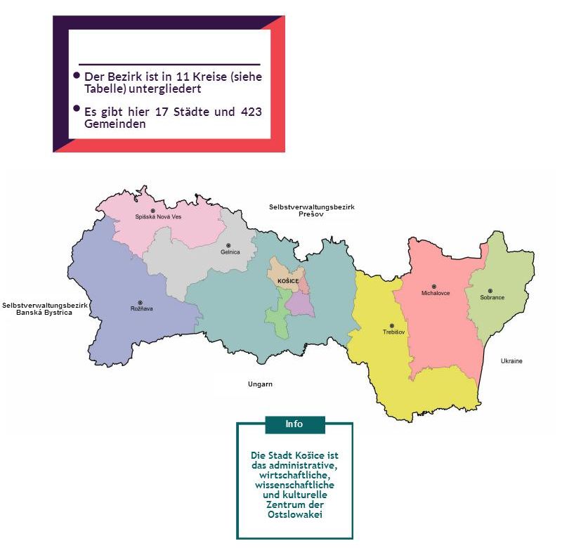 Aufteilung des Selbstverwaltungsbezirks Košice in 11 Kreise: