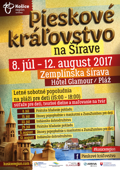 Pieskové kráľovstvo pri Hoteli Glamour na Zemplínskej šírave vzniklo z desiatok ton piesku a ľudského úsilia. Košice Región Turizmus, v spolupráci so šikovnými sochármi, pre vás pripravil sochy niekoľkých rozprávkových či mýtických postáv: Máša a medveď, veselý šašo, ohnivý drak a pán morí - Poseidón. Z piesku je dokonca vyhotovená aj replika najznámejšej kultúrnej pamiatky Svetového dedičstva UNESCO v destinácii Košice región – Spišského hradu. Pieskové kráľovstvo na Šírave, to je váš svet fantázie na dosah. Pri zdieľaní fotky z Pieskového kráľovstva na sociálnej sieti nezabudnite na hashtag #kosiceregion!