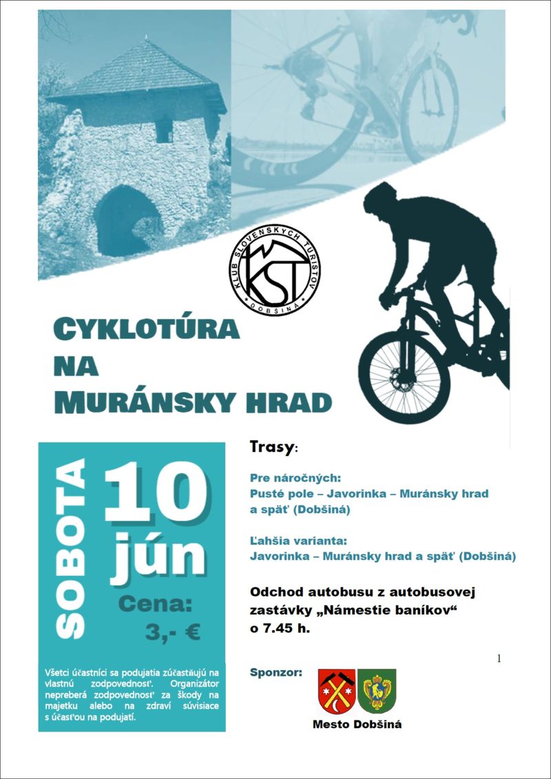 Klub Slovenských turistov a mesto Dobšiná organizujú v sobotu, 10. júna o cyklotúru na Muránsky hrad. Účastníci budú mať na výber z dvoch, rozdielne náročných trás. Účastnícky poplatok je vo výške 3€.