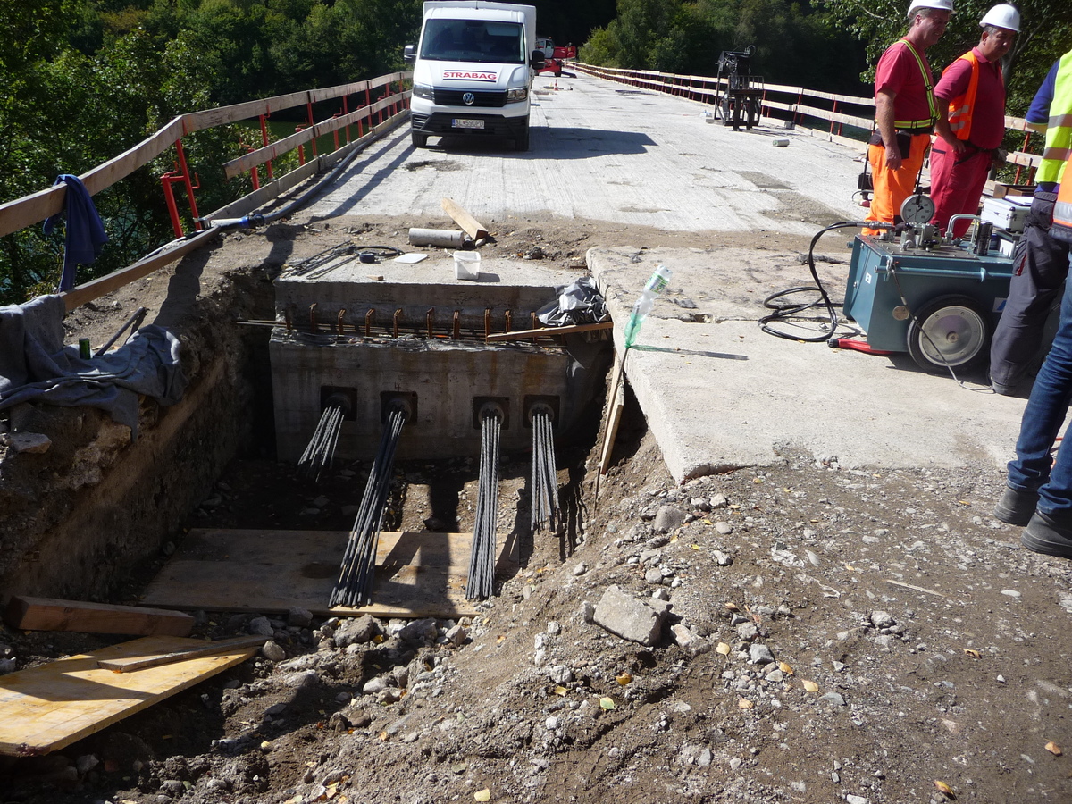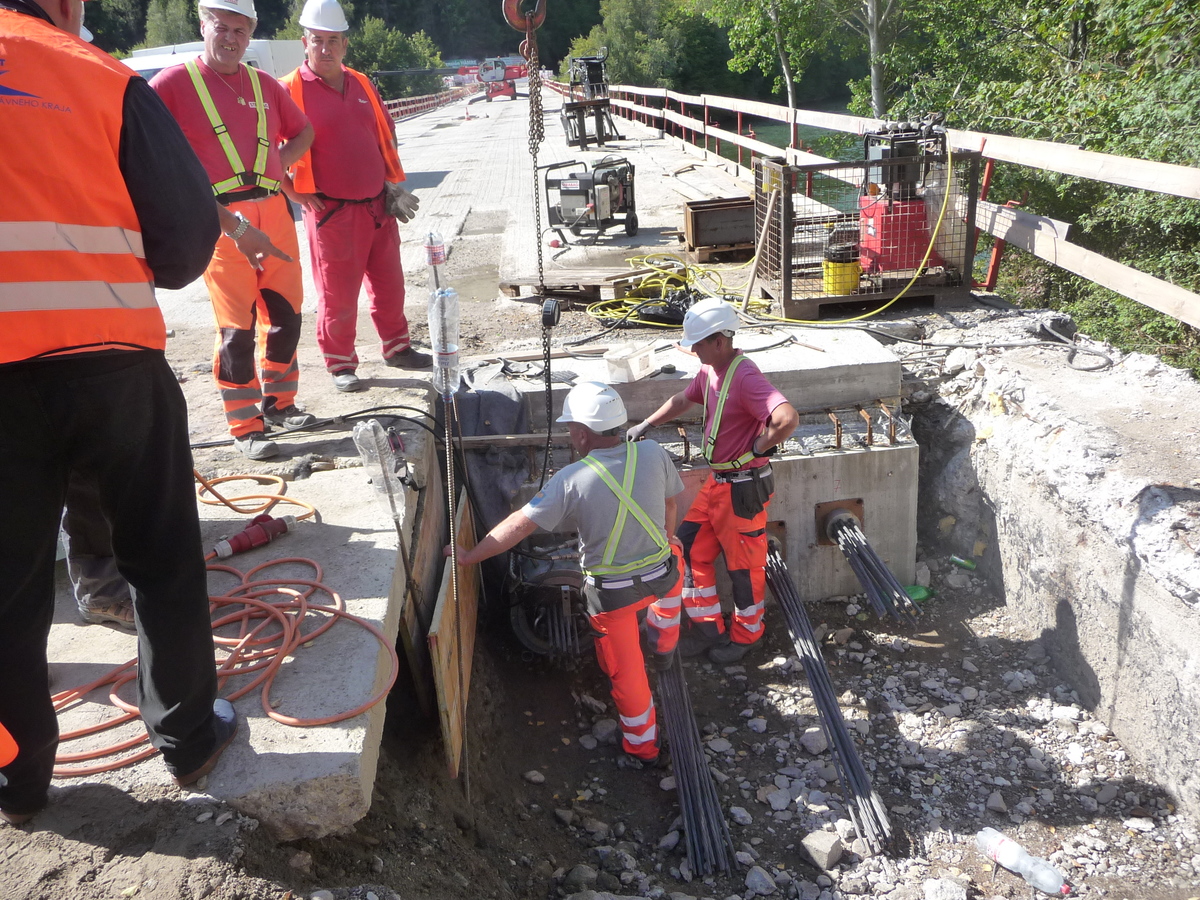 „Vo štvrtok ráno boli ukončené práce na predpínaní káblov. Tomuto procesu predchádzala príprava, pri ktorej dvadsať ľudí pracovalo hlavne vnútri mosta, v jeho komorách. Robili nízkotlakové injektáže a betonáže zvislých nosných konštrukcií, montáž oceľových konštrukcií – tzv. deviátorov, ktoré sú viditeľné aj pri pohľade zvonku, pripravovali montáž chráničiek, do ktorých následne nastrkávali oceľové laná. Tieto oceľové laná včera a dnes predpínalo sedem odborných pracovníkov so špeciálnou technikou. Toto bol najviac očakávaný moment v doterajšej rekonštrukcii, pretože sme nevedeli, ako budú reagovať laná a celá pôvodná konštrukcia. Na moste boli preto dočasne prerušené všetky ďalšie práce,“ povedal na kontrolnom dni stavbyvedúci Viktor Kanda.