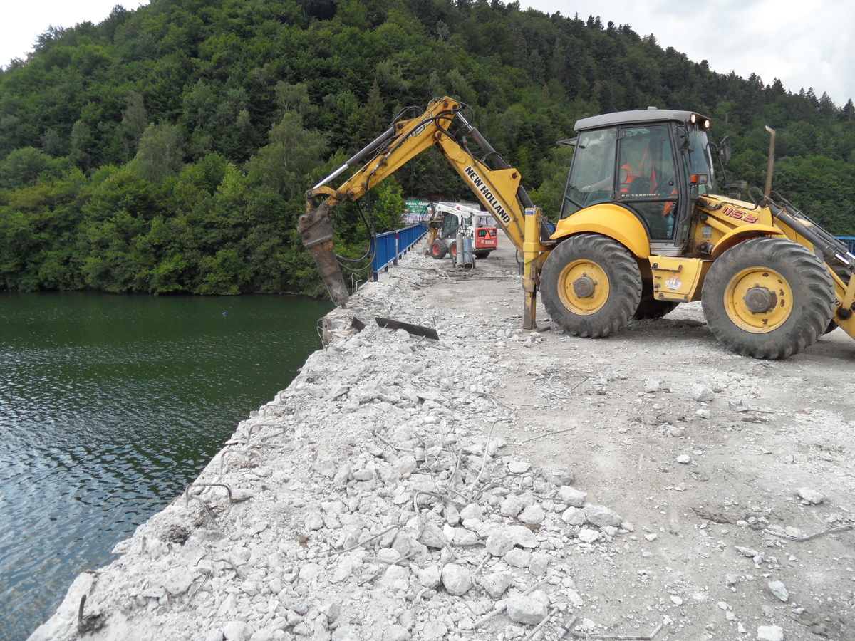 Postupne sa robia jednotlivé búracie práce: frézovanie vozovky mosta v celom profile mosta; odstránenie izolácie a povrchu chodníkov; odstraňovanie obrubníkov; demontáž zábradlia – ľavá strana mosta; frézovanie spádového betónu mostovky; odstraňovanie prefabrikovaných ríms.