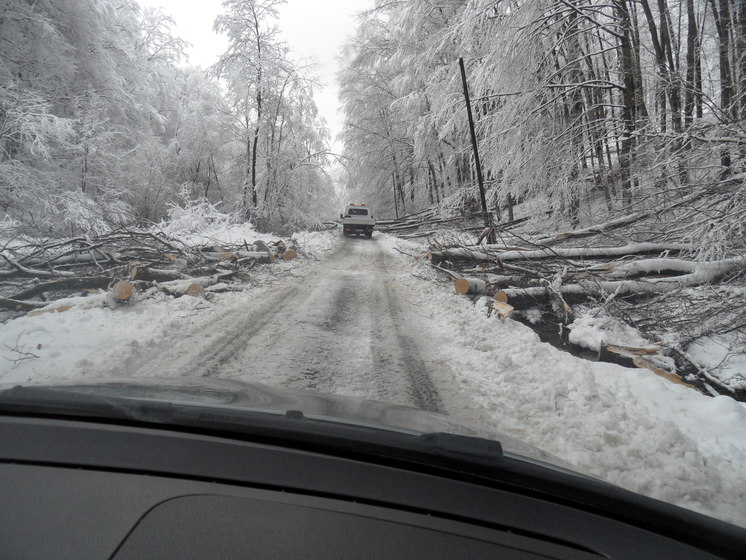 Daždivé počasie, ktoré trvalo na Sobranecku od piatka 2. februára, rozmočilo pôdu na svahoch lesných pozemkov. Vplyvom toho zdravé stromy neudržala ich koreňová sústava a po zaťažení konárov popoludňajším mokrým a ťažkým snehom popadali na cestu desiatky stromov. Najhoršia situácia bola na ceste tretej triedy z obce Ruský Hrabovec do Ruskej Bystrej. Obec zostala odrezaná od okolia od polnoci zo soboty na nedeľu až do nedeľňajšieho dopoludnia. Na sprejazdňovaní cesty pracovalo priamo v teréne 35 ľudí, z toho 14 profesionálnych hasičov, 13 hasičov – dobrovoľníkov a 8 cestárov. V menšej miere popadali stromy aj na vozovku cesty druhej triedy medzi obcami Podhoroď a Ruský Hrabovec, kde bola cesta sprejazdnená operatívne. Zdržania boli maximálne do hodiny.