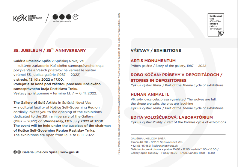 Súčasťou osláv, ktoré sa konajú pod záštitou predsedu Košického samosprávneho kraja Rastislava Trnku, sú ďalšie dva nové výstavné projekty – Human Animal II. a Edita Voluščuková: Laboratórium.