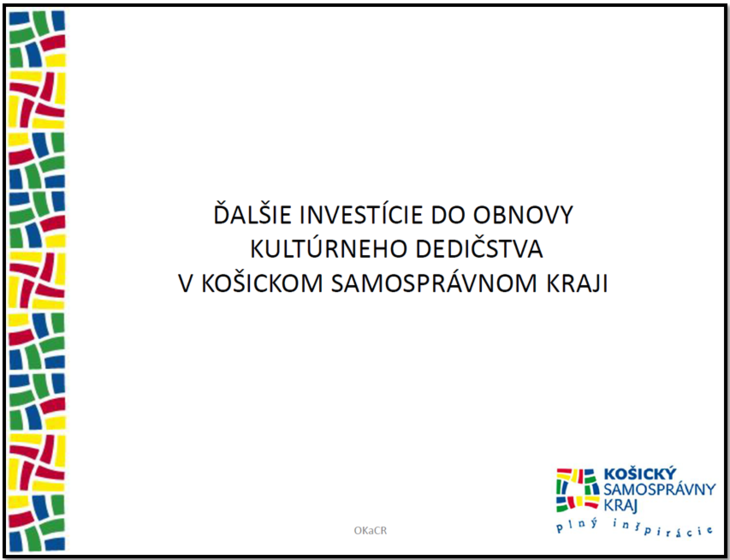 Obnova kultúrneho dedičstva v Košickom kraji predstavuje jednu z najrozsiahlejších investícií do kultúrnej infraštruktúry na Slovensku a v rámci nej boli využité finančné prostriedky z európskej a národnej úrovne ako aj vlastné zdroje regionálnej samosprávy.