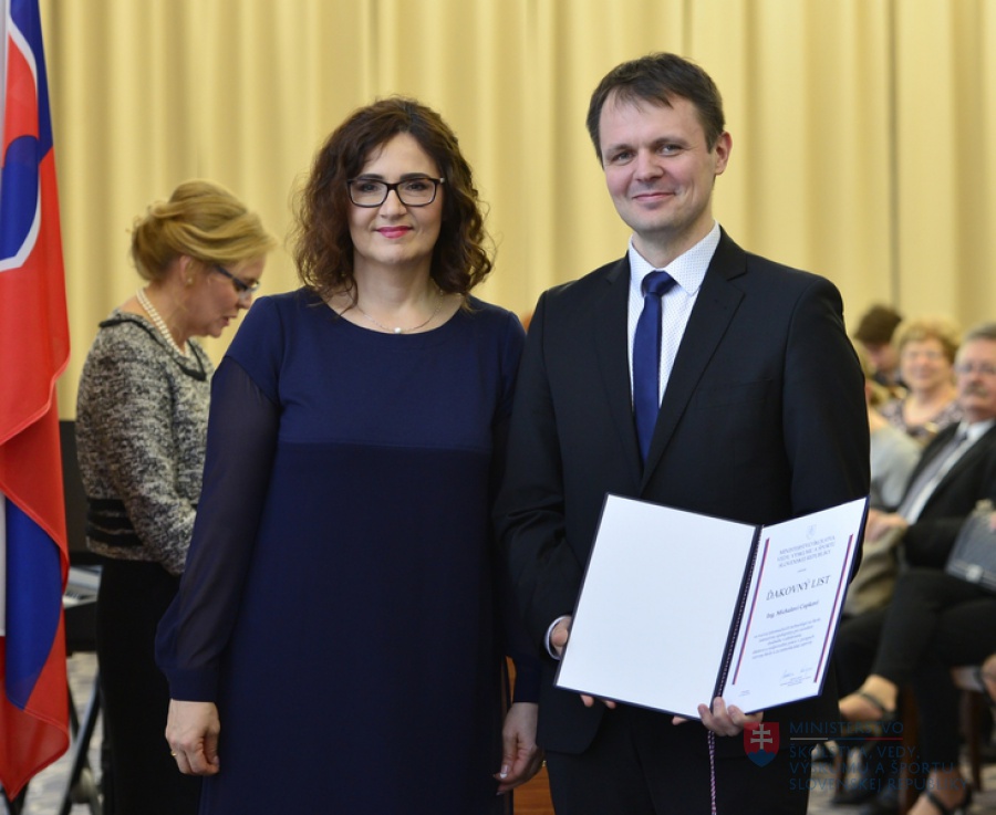 Ďakovný list za rozvoj informačných technológií na škole, intenzívnu spoluprácu pri zavedení duálneho vzdelávania, obetavú a zodpovednú prácu v prospech rozvoja školy a za mimoškolské aktivity prevzal Ing. Michal Copko zo Strednej priemyselnej školy elektrotechnickej v Košiciach.