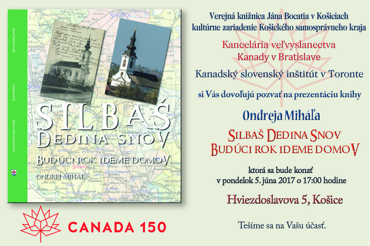 Predseda Kanadského slovenského inštitútu Ondrej Miháľ predstaví v knižnici J. Bocatia svoju najnovšiu knihu s názvom Silbaš: dedina snov / Budúci rok ideme domov. Prezentácia bude v pondelok 5. júna 2017 o 17. hodine v centrálnej požičovni Verejnej knižnice Jána Bocatia v Košiciach na Hviezdoslavovej ul. 5.